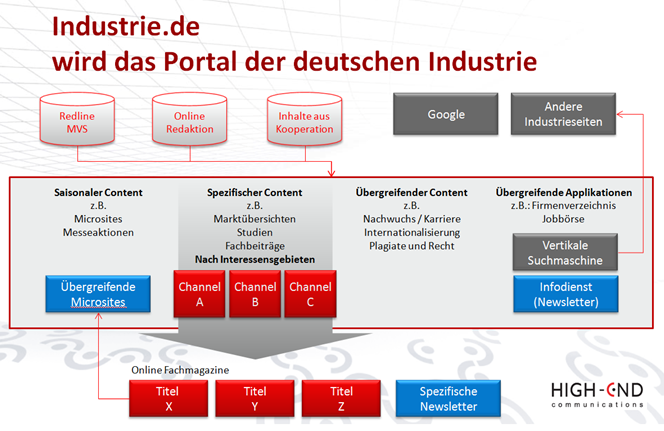 Ein wesentlicher Aspekt der Strategie ist ein titelübergreifender Austausch von Informationen. Darüber hinaus aggregiert eine übergeordnete Plattform unter der sehr gut merkfähigen Adresse industrie.de die wesentlichen Angebote.