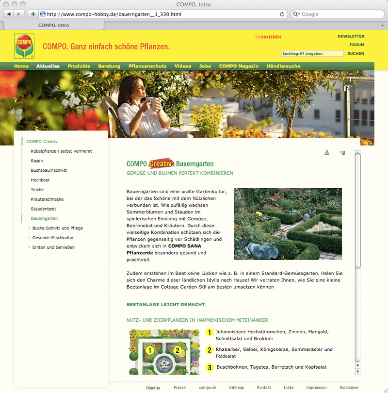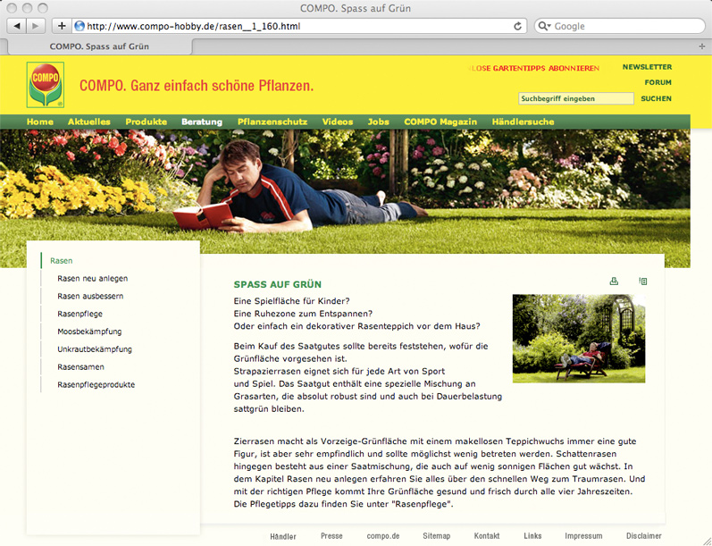Wir begleiten die Europa-Expansion der COMPO-Consumer Sparte mit dem Hiph-End Publisher. Das internationale Corporate-Design, Branding und wesentliche Markenwerte transportieren wir konsequent. Der Content wird jedoch dezentral verwaltet und entspricht somit den spezifischen Verbraucherbedürfnissen in den Länder. Der High-End Publisher ist einfach zu bedienen, effizient und löst jede Herausforderung.