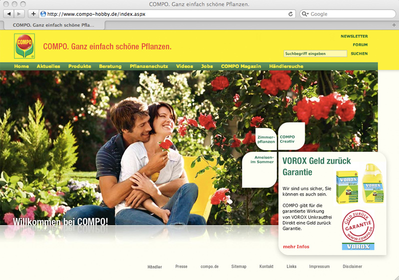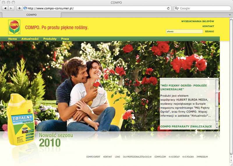 Vor mehr als 10 Jahren, als es gerade mal 1. Mio User für das Internet in Deutschland gab, hat High-End communications die erste Webseite für COMPO Consumer kreiert und umgesetzt. Mit ersten Flashanwendungen und einem Forum, lange bevor web 2.0 "in Mode" kam. Damals wurde selbstverständlich jede Zeile von Hand in HTML programmiert.